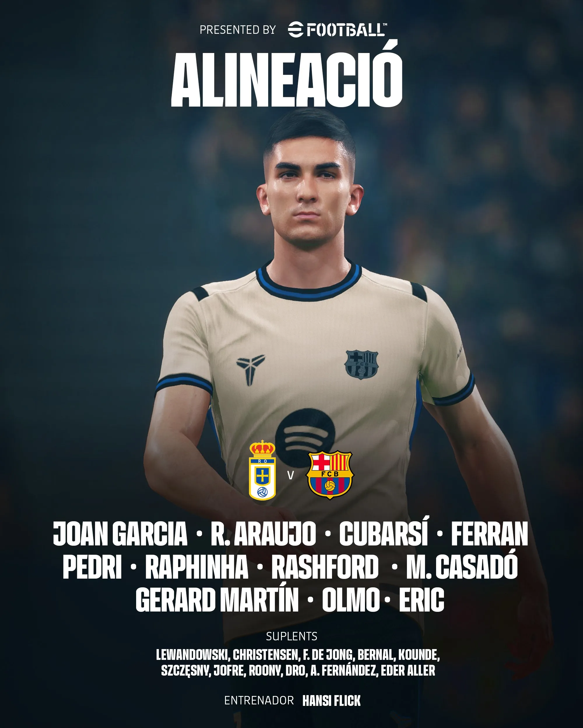 奥维耶多vs巴萨首发:佩德里、拉菲领衔,费兰、拉师傅登场