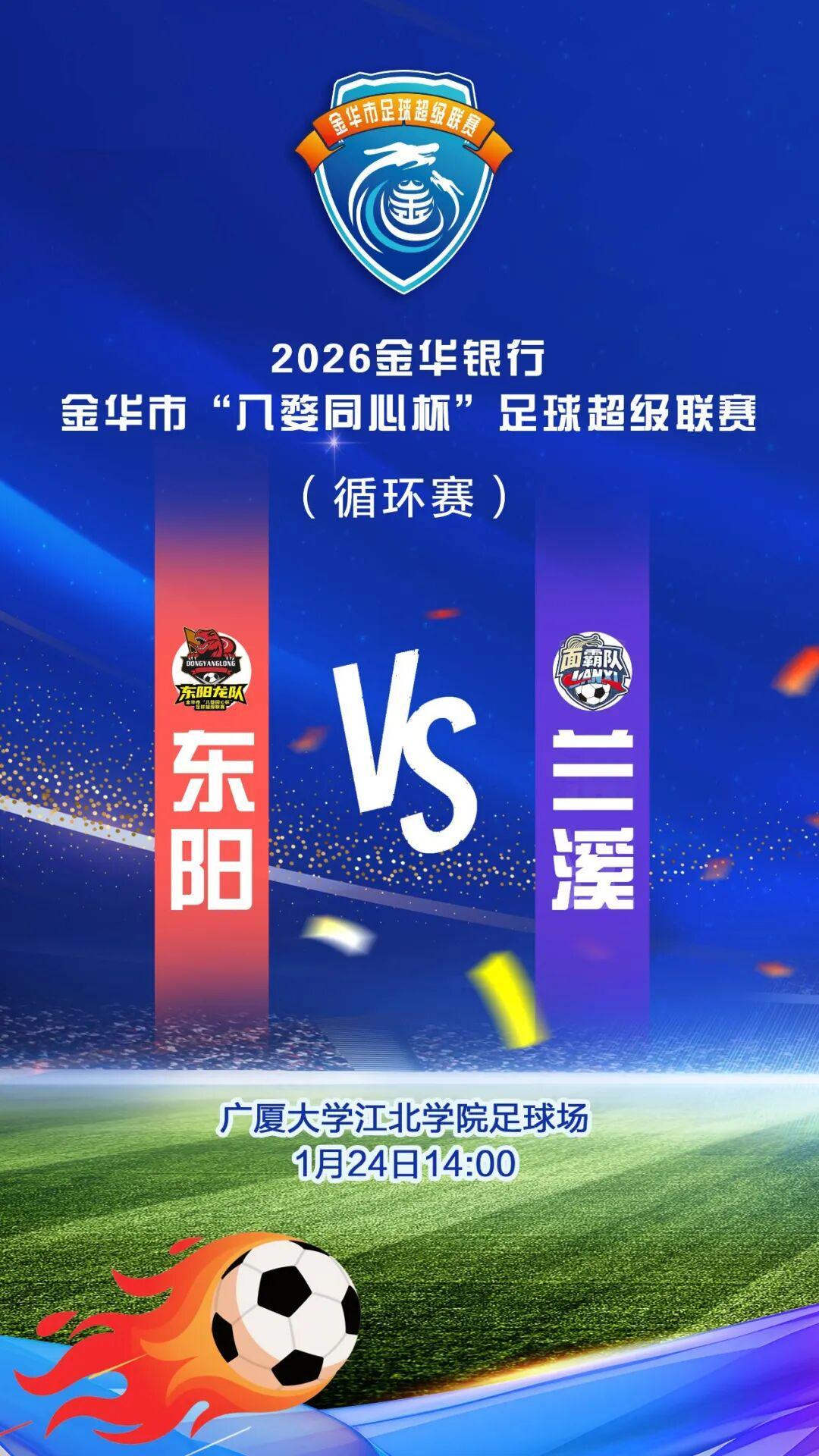 1月21日下午,2026金华市“八婺同心杯”足球超级联赛东阳龙队在浙江广厦建设职业技术大学江北校区足球场迎来首个主场比赛,对阵浦江队。尽管东阳龙队队员在场上拼尽全力、奋勇作战,但最终以1:2的比分惜败对手,未能拿下主场胜利。